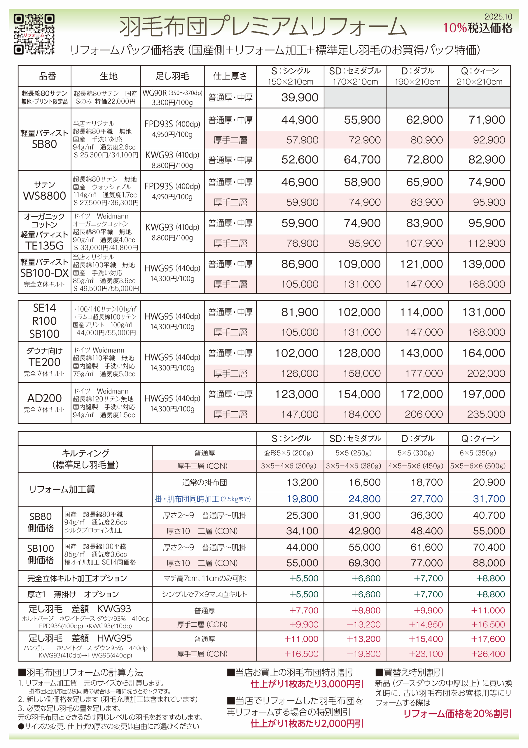普通は立体キルトか二層キルトがほとんど